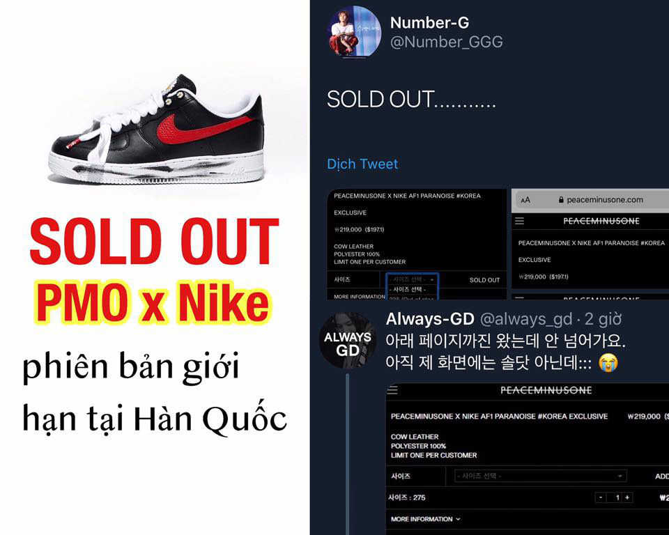 Tuy nhiên, nếu muốn sở hữu giày mà G-Dragon collab cùng Nike thì bạn vẫn có thể đợi tới ngày 23/11 để sở hữu phiên bản quốc tế nhé.